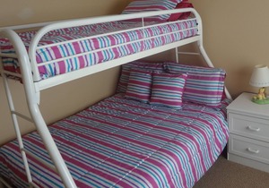 Second floor 3 bedrooms one with a queen size bed and the other 2 themed bedrooms with