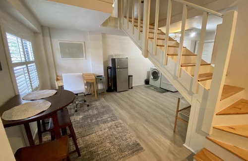 Take comfort in this peaceful lofted apartment, perfect for traveling professional, workspace, washer & dryer, pool, off-street parking, walkable to lakes. Kitchenette, living room, TV. Peaceful walkable upscale neighborhood. Dedicated washer & dryer, no shared living space.
