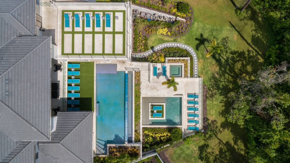 Beyond the luxurious accommodations, guests can enjoy a variety of on-site activities. Children will delight in the arcade and indoor sports court, while adults can unwind in the spa area, featuring a Turkish steam room and redwood sauna. The multi-level saltwater pool provides a perfect setting for family fun and relaxation.