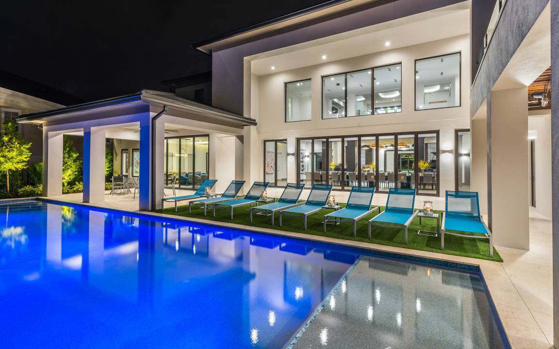 Private Resort-Style Pool & Spa: A stunning outdoor oasis with loungers, fire features, and serene water views.