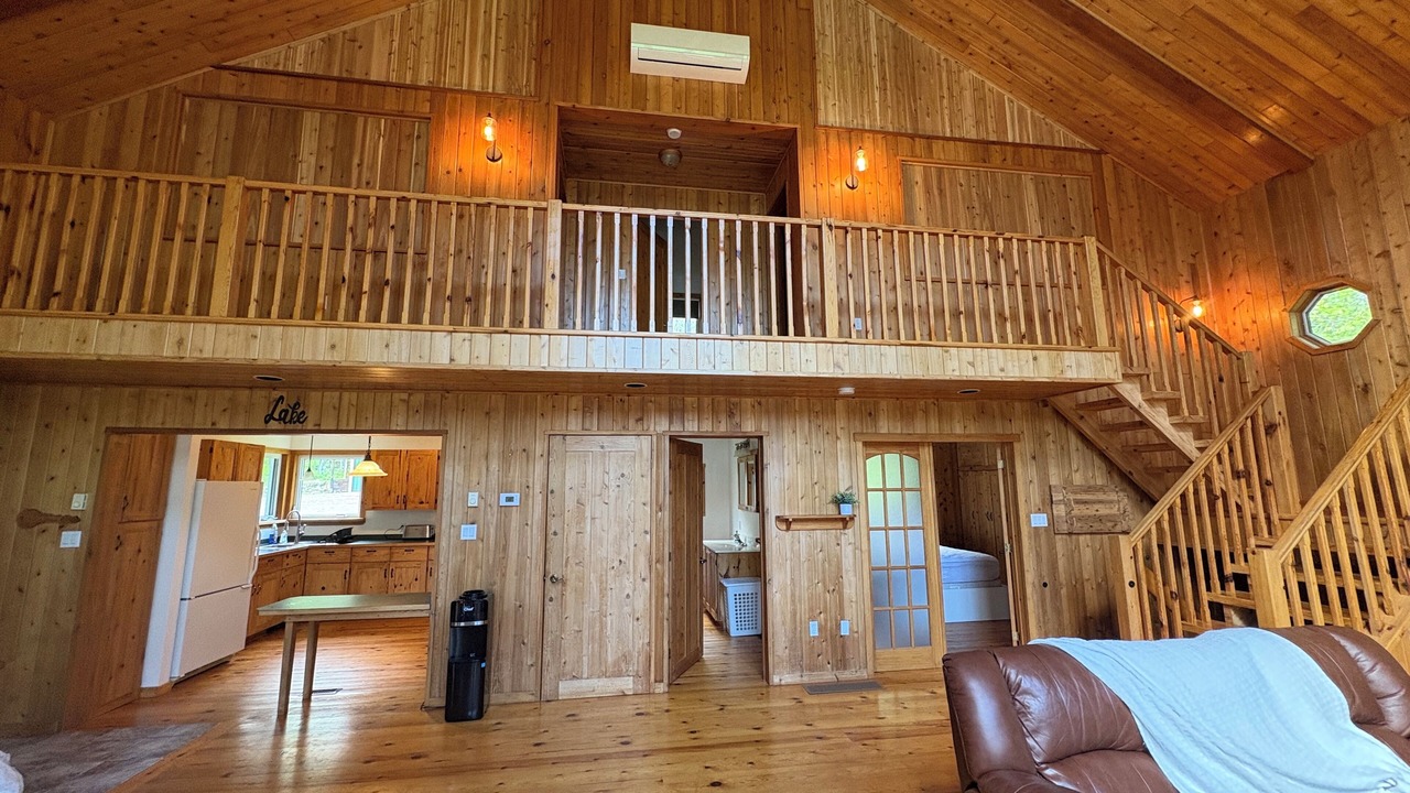 Modern rustic pine cottage lakefront on breathtaking Lake Talon! Spacious cottage with room for the whole family! 3 bedroom, 2 full bathrooms with full kitchen, laundry, and spacious open concept dining/living area. Inside 2-storey windows on entire south wall with lake views for the ultimate serenity. 4 season home can be enjoyed year-round.