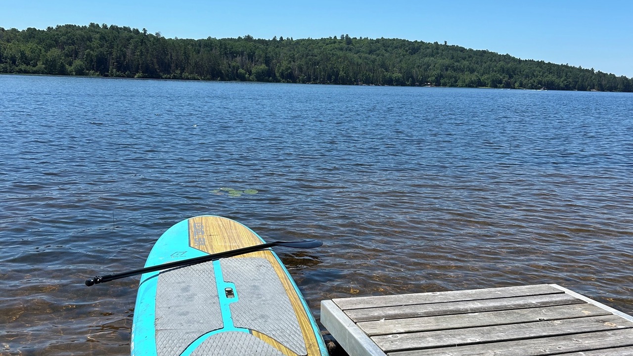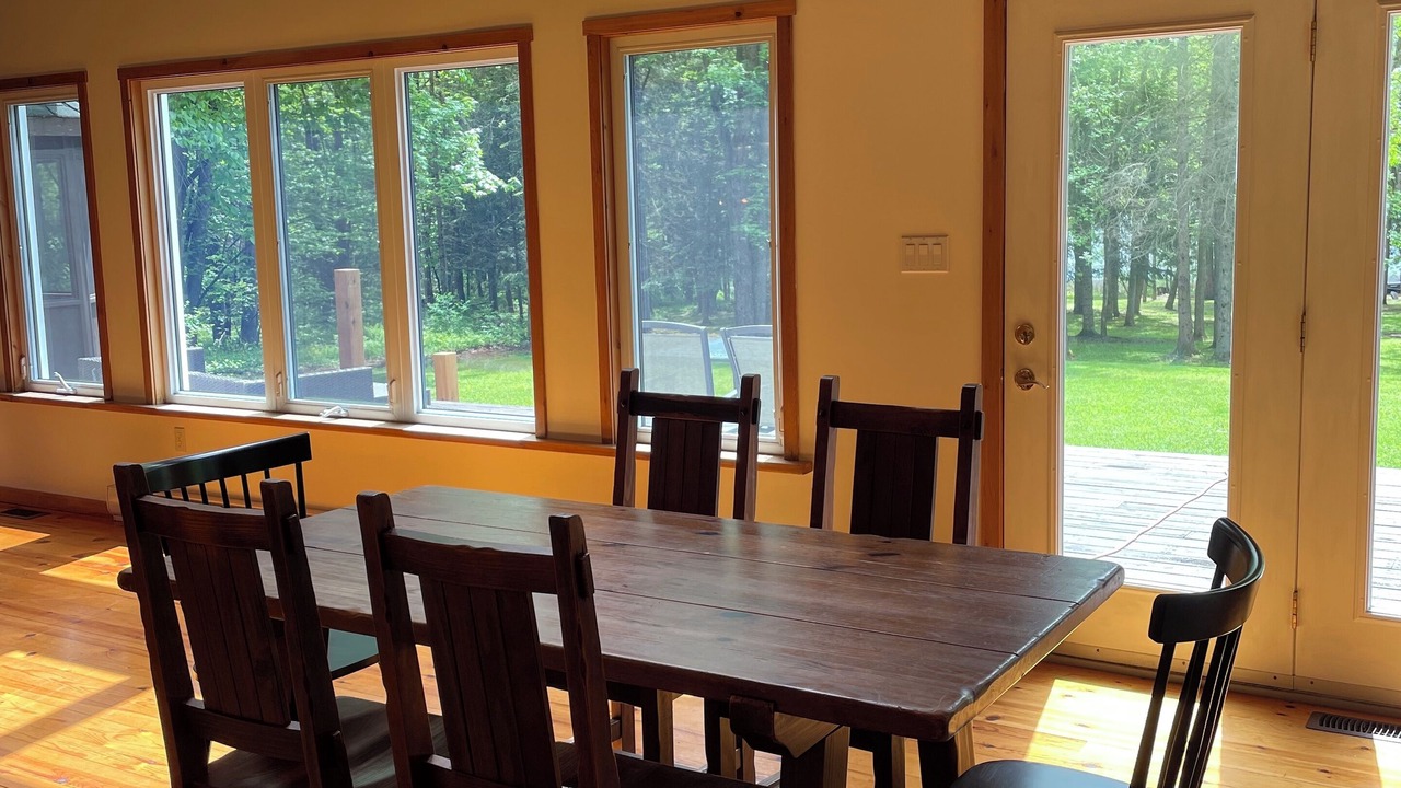 Our waterfront property offers a perfect summer vacation! Large property with your own private dock. Grassy yard perfect for lawn games and waterfront with sandy lake bottom perfect for swimming. Two fire pit locations for those evening campfires. Firewood is provided for your stay! South exposure for full daytime sun with large deck with dining and lounge patio furniture. Additional gazebo for relaxation and side covered porch with BBQ allowing for all-weather enjoyment. Air conditioning available for your comfort. Paddle boards and canoe available for use, at your own risk.
