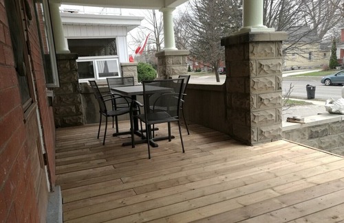 King Suite offers you one bedroom, one living, heated, aircondition sunroom with kitchen and eating table. One walk in shower bathroom with various furnishings to provide you with an enjoyable and relaxing stay. Find out more about it's features here. Our suite could be staying for up to 3-4 persons. please be advised: The price is only for two persons staying over night, additional person for over night with $25 CAD plus HST per night per person. Room furnishings 380 sqft LED TV with over hundred Bell satellite HD TV Channels and many payperview channels remove control aircondition and heat in the bedroom and living room. 120 sqft pravite balcony with ganite top table and two beautiful chairs One bedroom, one living room and one sunroom with heat and cool aircondition and 80" long granite counter top bar. One king bed. One love seat, one sofa chair and confortable chair, Stools En-suite bathroom shower only with 34" granite top vanity and auomation control humidity smart bathroom fan. Radio and luggage closet. Free K-cup cafe, microwave, toster, 4.4 cub barfridger and hot or cool drinking water are aveailable through out 24hrs at sunroom guest's bar.Our guests are welcome to our new accommodation option with Stratford Ambassador's Inn Next Door. We've come to know that our some guests would like to have King beds or two twinXL beds in bigger room and skip the breakfast, have their own private large living room as each suite's common area to enjoy their stay when they are visiting festival city Stratfrod. So we have created a new Ambassador's Inn next Door with four individual luxurious suites. Each inn suite has 400 sq inside living area and bigger balcony. This hotel was completely renovation as standard Ontario hotel building code from Aug. 2016 to Feb. 2018. All suites are sound proofing and each inn suite owns guest controls high quality and very quiet heat and air conditioners. Twin Victoria solid houses were built in 1923 by brothers: 266 Ontario St. is Ambassador B&B Guest Home and 262 Ontario St. is Ambassador's Inn Next Door. Four swans have been sitting in front of the house for over half a century to welcome you. We offer four spacious and comfortable B&B rooms and four luxurious suites with free parking at a very affordable price. You will have breakfast choices of delicious home-made Chinese and Canadian food. We also serve the famous Fujian oolong tea that is shipped right from the oolong tea hometown. Hope you enjoy the fresh taste of oolong tea to start a new day. We are at the centre of all attractions: Stratford Festival Theatre, Tom Patterson Theatre, Avon and Studio Theatres, downtown area, and the beautiful Avon riverside park. Depending on the path you walk to the Festival Theatre, you will either be impressed by century-old heritage houses and stately trees lining along the streets, or enjoy the scenic view along the Avon River and elegant swans. This reservation has a Flexible cancellation policy - refunds will be issued up to 30 days prior to the check in date. A 100% refund is provided for travellers cancelling at least 30 days before check-in. A 50% refund is provided for travellers cancelling from 14 to 29 days before check-in. No refunds are provided for travellers cancelling less than 14 days prior to check-in. CanadaStays Booking Fees are refundable if you cancel within 48 hours of placing your booking request. Our house rules: primary renter must be 25 or older, no smoking, parties permitted, no pets. No cigarette smoking inside the Suite but Cigarette smoking is allowed in the private balcony. Check in time is after 3:00 PM; Check out time is before 11:00 AM. Please be advised Cannabis smoking is not allowed within whole Inn property.