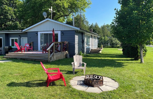Look over water on your front deck. Awesome cottage completely rebuilt in 2019. Located accross from Marina. 15 minutes to Grand Bend, 5 minutes to trails,Golf Course. 5 minutes to
