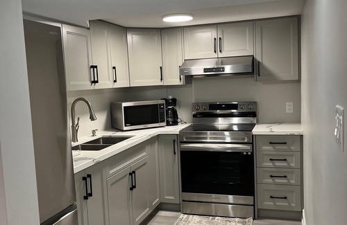 kick back and relax in this calm , stylish space . this is legal basement apartment with one bedroom with closet , separate kitchen , washroom with standing shower and LED mirror . And huge living dinning room . basement has separate entrance from side of the house . message me for more info . its brand new basement finished recently . i added stove , couch , microwave and put dishes in kitchen cabinets. I am willing to give you best price if we talk about it . Its totally private and safe place for Guests