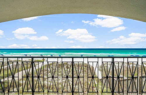 ✹ REMODELED, BEACHFRONT HOME offers expansive views from the living spaces, two bedrooms, and three patios of sugary white sands and crystal-clear waters of the Emerald Coast