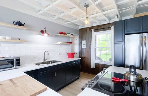 Big beautiful kitchen with lots of prep space - no dishwasher but everyone loves to help in this kitchen! The view is enjoyed by all who share family meals at the large dining table including extra seating at the island.
