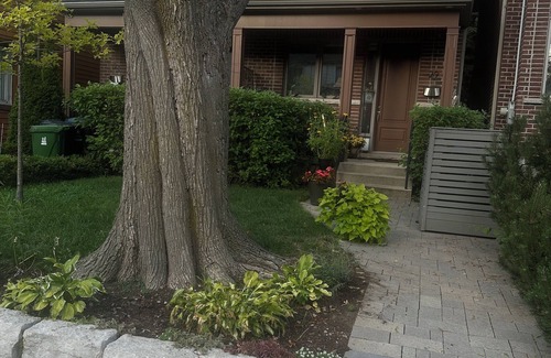 Spacious and cozy, furnished, semi-detached house in the Pocket neighbourhood in the east end of Toronto. Located about three blocks to the north of the house is the Danforth and Queen Street East is 1.5 km to the south. The house is spread over four floors. The main floor includes a sitting room, dining room with a table that easily sits 6 people, a large sunny kitchen with a bar great for entertaining and access to the patio and laneway. We love to cook, so the kitchen is fully equipped and stocked. There is also a half-bath or water closet on the main floor. The basement has a spacious living room with TV and electric fireplace. You can log in with your streaming account or use our guest Netflix account. There is a lovely piano and a sit/stand desk and large monitor for an at-home workspace. The basement also has a full washroom with walk in shower. On the second floor you will find another full washroom with tub and shower and two bedrooms. One of those bedrooms has a twin bed (a teenage room) and the other bedroom has a full-size bed and a desk. My wife (the professor) uses one of these rooms as her study … so it already has writer’s vibes! The top floor is a large primary suite with a large standalone tub, a spa like rain shower, two vanities, and a queen size bed with two wardrobes. There is access to a large balcony. There is a laundry closet with washer and dryer on the second floor. The back garden/patio is fenced for privacy. This is a lovely, inviting home in a great neighborhood, with easy walking and biking, quick access to public transit, and parking available. It’s a great place to live!