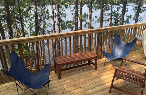 This is a charming water access seasonal cottage ( May-October, boat access only from marina, you cannot drive here, no boat provided, bring own or use water taxi from marina) located in the middle of beautiful Canadian Shield landscape. It is located near the end of West Bay on gorgeous Lake Weslemkoon and faces west so you can enjoy truly spectacular sunsets from the deck. The property is quite private, with the Owners own cottage next door but not visible and a quiet family cottage on the other side of a small bay. This is a boat-in wilderness cottage built in the 1970's by the previous owner with natural forest and wonderful deep lake swimming from the dock. Best for a couple or small family. Children are welcome and our kids love it but it may not be suitable for very small children. Well behaved pets are also most welcome. Parking and a water taxi service are available for additional fees through Weslemkoon Marina. The rear of the property backs onto great hiking trails to uninhabited lakes. Enjoy the rustic charm of a traditional cottage with a beautiful pine interior where selective updates have been done in keeping with the spirit of old school cottaging. There is a large new deck overlooking the lake and a cozy wood stove for chilly evenings. There is a small bathroom with a sink, toilet and a shower (with hot water). The original kitchen is in place with expanded counters and a new refrigerator but no dishwasher. The large lake and open bay out front are great for water sports. There is a TV for movies, traditional board games and lots of books for reading. There are 3 bedrooms, one with a double brass bed, and 2 other en suite bedrooms that are connected and open to each other - one with a single twin bed and one with 2 twin beds. There is a large swim dock with great deep water swimming (but may not be suitable for very small children) and a small dock suitable for mooring of a boat if you want bring your own. Of course the autumns are beautiful with great colours and few bugs! Please also note that the cottage is self-catering with guests responsible for cleaning.