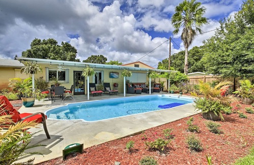 Beautifully furnished 3 bedroom and 2 bath home in St Petersburg. Conveniently located to shopping, beaches, and tourist attractions. Open floor plan home with living room, dining room and kitchen. Granite counter tops, all stainless stee l appliances and Florida room. Forty feet covered patio and pool with BBQ grill and fire pit Lush landscaping. Spacious bedrooms with walk in closet. Quiet Residential Neighborhood Two Large screen TVS with Spectrum TV and Internet You will feel right at home in this comfortable home.