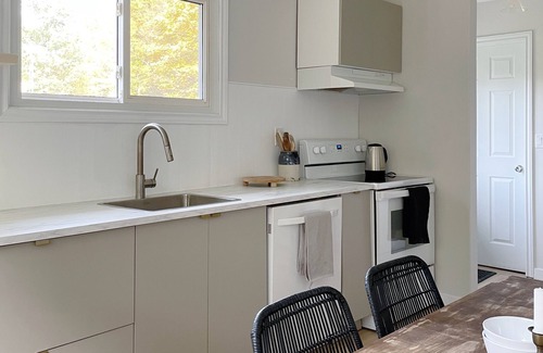 Our cottage comes equipped with a full eat-in kitchen, stocked with utensils and cookware to make you feel at home during your stay.