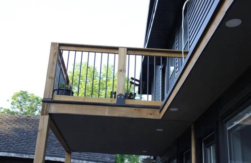 The apartment is brand new, built and furnished to meet the highest standards, stainless steel appliances, washer and drier, Queen size bed and high end mattress. Despite being located on the main street, the apartment is facing the back yard with incredibly beautiful view and is very quiet. Large private balcony allows you to relax and watch the birds and the squirrels chasing each other on the beautiful pine tree in front of you. I think that it should be mentioned that not only we take cleaning and disinfecting the place very seriously, but also that each apartment is self contained and doesn't have any air exchange with the others. The heating is not by furnace and air ducts in which case the same air circulates everywhere in the house. The heating is by modern hot water aluminum radiators separately for each apartment . The cooling is also by AC for each individual unit.