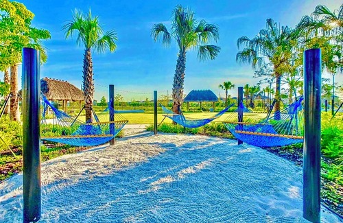 • Lounge areas with hammocks, beach chairs, and free WiFi