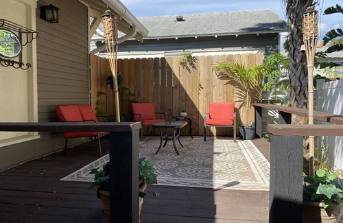 Beautiful 1900 Historic Romantic Bungalow, restored to its Original Beauty. Offering upscale furnishings, beautiful hardwood floors & mahogany ceiling beams. Open LR/DR concept, 2 Cozy BRs & 2 Full Baths. 2nd Bath not connected to BR. Fully equipped Kitchen w/Unique Bar for Coffee, etc. Washer/Dryer. Private Patio w/ Grill, Back Deck w/Lg Umbrella & 2 car On-Site Parking. Historic Uptown, easy walking to Great Restaurants, Coffee Shops, 2 Parks, etc. Approx 1 mile D'Town St. Pete. Suggest using Uber/Lyft due to parking. If you’re looking for Real Estate, our partner & my twin sister is a Real Estate Agent & has been working in St Petersburg for over 20 years. She’s an amazing realtor & goes above & beyond most. Vikki Sears 727-452-0068.