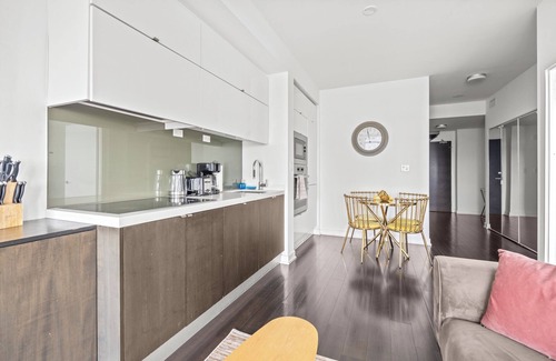 Modern Unit with the Balcony and Amazing Lake View in the Heart of Downtown Entertainment district on 49th Floor. The apartment has 1 bedroom with queen bed and a Den with a twin bed. Also their 1 Bathroom. Easy access to TTC, Union Station, Lake Shore and Gardiner Express Way. Steps to CN Tower, Rogers Center, Union Metro Station, Financial District, Bars, Restaurants, Sobeys Grocery Store, Bishop airport, etc.