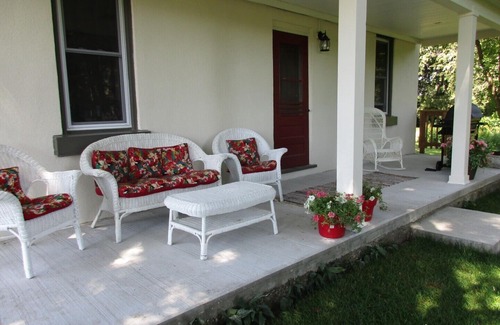 There is a charming porch to enjoy your morning coffee and listen to the frogs and watch the birds.