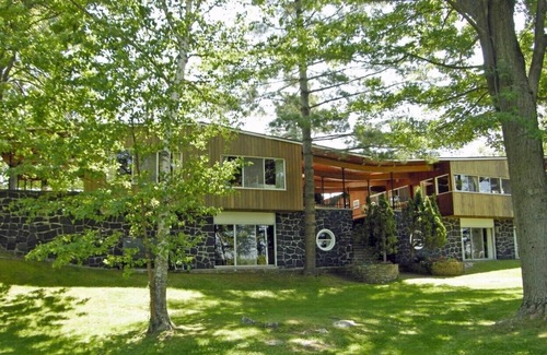 Guests enjoy privacy, comfort and Island life in this historic residence on Tar Island in the world famous 1000 Islands. This 6 acre property includes a beautiful main house (designed by mid century modern architect John Schreiber), separate bedroom wing, self-contained boathouse, boat port, private sandy beach, and walking trails to explore the property and neighbouring Thunderbird Island. The 1000 Islands has the best fresh water boating, diving & fishing in the world & is perfect for your next vacation.
