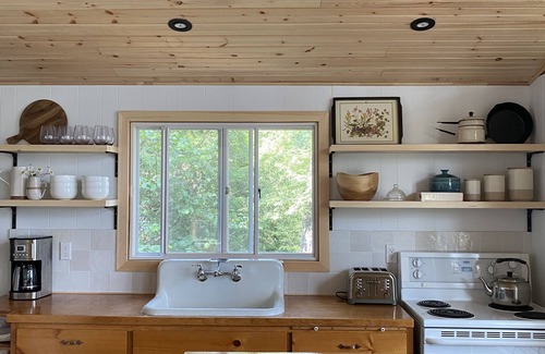 Our little slice of heaven is a four season, 800 sq ft cottage, with three bedrooms and a full size, west-elm sectional sofa bed to sleep any overflow guests.