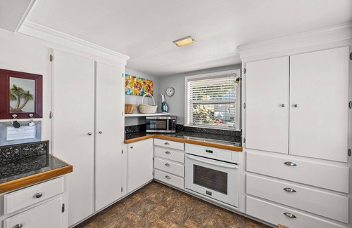 On the beach, you will find for your enjoyment a large tiki hut, a shaded hammock under the palm trees, Adirondack chairs, and two kayaks.