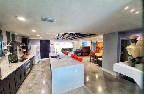 Please note that the house is listed with five bedrooms. If your group exceeds 11 people, we unlock the guest suite, which serves as the fifth bedroom with one king bed. Please refer to the "guest count" section for further details.