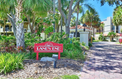 Land's End is a gated waterfront community in Treasure Island, nestled at the end of a peninsula and surrounded by water on three sides. To the east, it borders a channel of the Intracoastal Waterway, while the Gulf of Mexico lies to the west, and Blind Pass to the south. Residents can enjoy stunning views of boats passing through the channel, with dolphins and manatees often spotted nearby. The community features 10 buildings and a range of amenities, including a large, heated pool, hot tub, tennis and pickleball courts, sand volleyball, shuffleboard, gazebos, and a BBQ grilling area. Direct beach access onsite for all offers a perfect blend of relaxation and recreation for anyone.