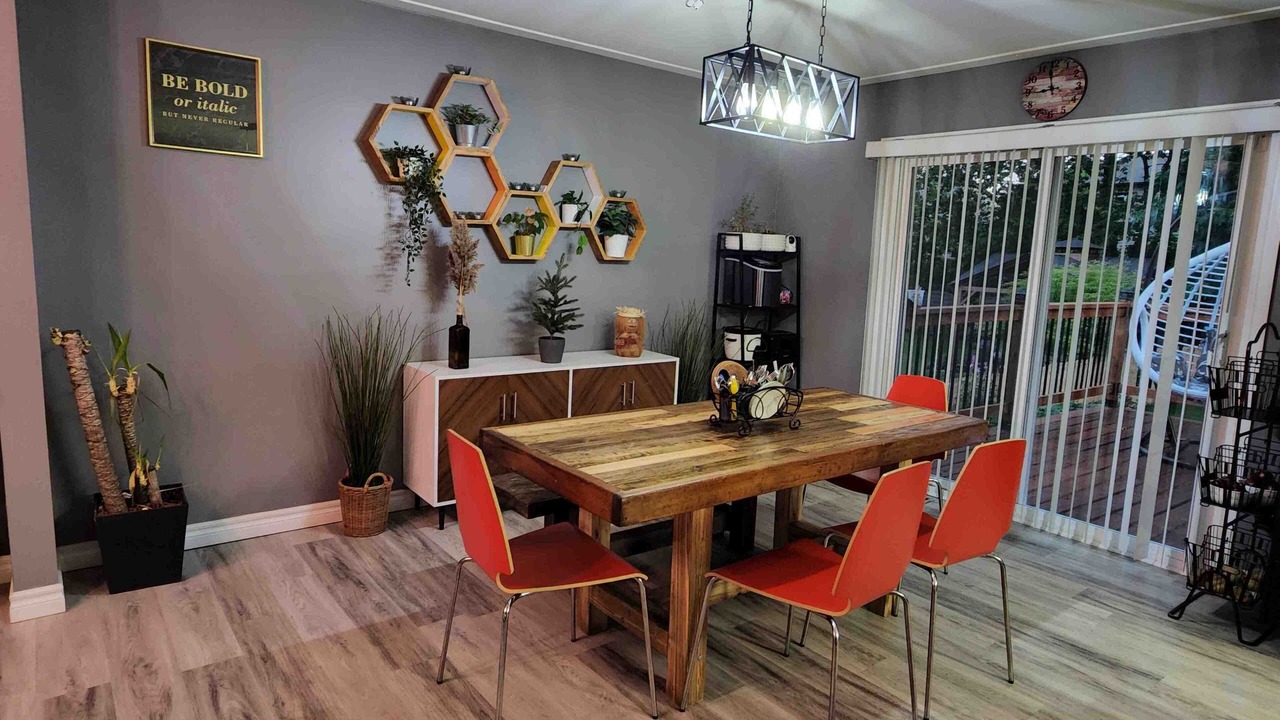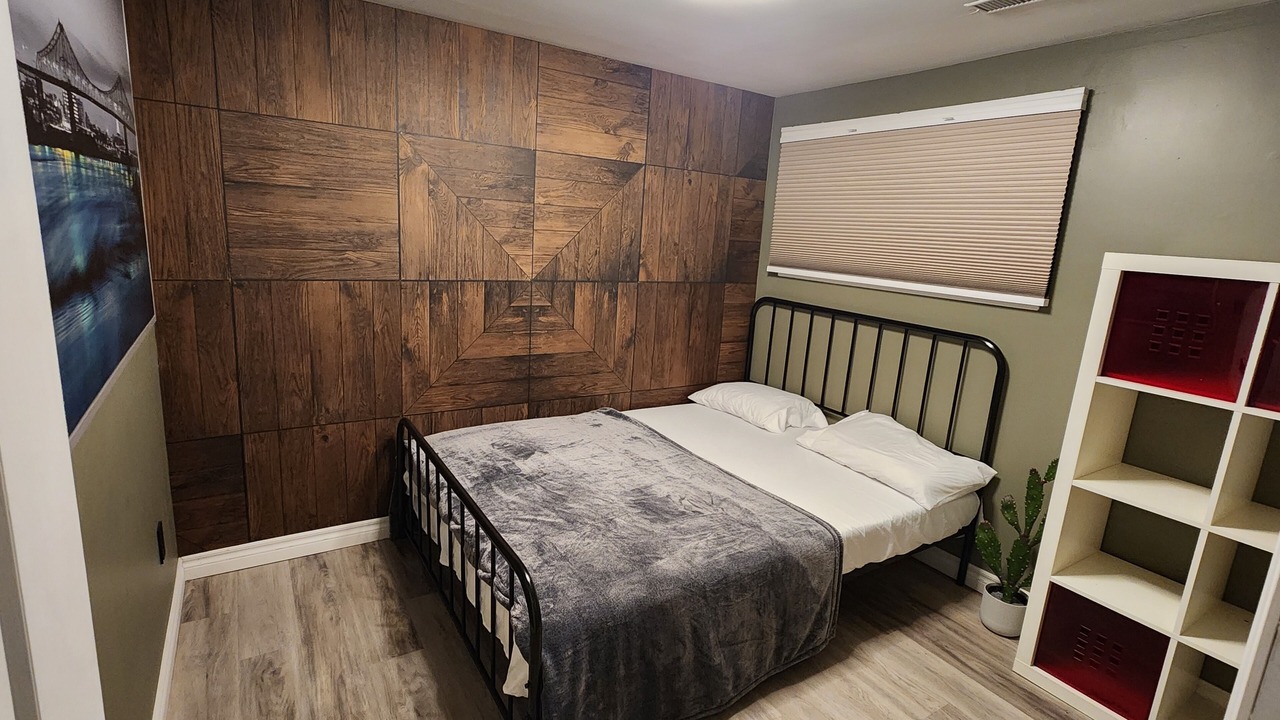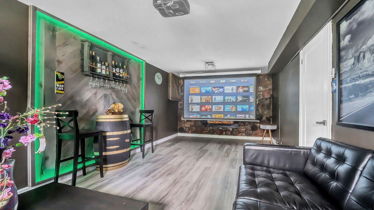 BBQ, firepit, backyard games, board games, movie projector and more. Live, work and play at this small, cozy bungalow.