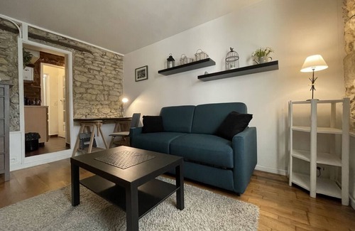 The Studio refurbished is located on the ground floor of an old and quiet house in the quiet la Butte. Its stone walls and oak flooring make it a charming and romantic place. Once through the small fully-equipped kitchen you get into the bathroom, then in a small laundry room equipped with a washing machine and dryer.