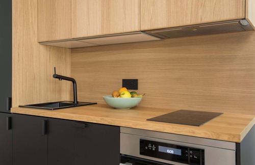 - Cuisine ouverte avec réfrigérateur, congélateur, four, micro-ondes, plaque de cuisson, lave-vaisselle, cafetière (avec capsules), bouilloire, grille-pain et tout ce dont vous avez besoin pour cuisiner et manger. Nombreux espaces de rangement. Coin repas central avec chaises hautes pour les personnes Fenêtre sur la cour intérieure.