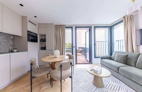 This beautiful unit with balcony is located in the center of Paris, between the Opera district and Madeleine. Whether it's for a business trip or a visit to our beautiful capital, we offer you the chance to live like a Parisian during your stay, while enjoying the services of a 5-star residence.