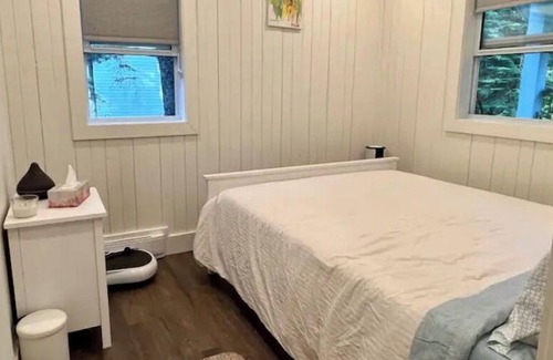 Pet friendly newly renovated cottage on gorgeous Mary Lake in Port Sydney of Huntsville Ontario. 5 night min stay BUT write to me if want shorter stay avail inbetween longer bookings. Private dock and kayaks, 2 min walk to public beach with boat launch, 5 min walk to David’s store for great coffee breakfast sandwiches or pizza and most things you might need, drink or eat at the pub at Pine Lodge a few doors down, incredible location. All linens provided, kayaks, grill, washing machine, sleeps 8. 3 bedrooms (one with 12 I inch foam queen, one with bunk bed, and a studio with a deck looking at the water that has a 12 inch foam queen and two twins that convert into a king if preferred and lock into place). Two full bathrooms. Have a fire by the water, kayak to Rocky Island (15 min paddle) and jump off of jumping rock (38 feet high). Drive into downtown Huntsville (15 min), The water at the cottage is shallow at first in sandy beach ..absolutely perfect great for dogs and kids to wade. It stays shallow for some time and then drops which is really nice. It is deeper at the public beach next door if you want to jump off if that dock into deeper water. Come make some memories to last a life time :)