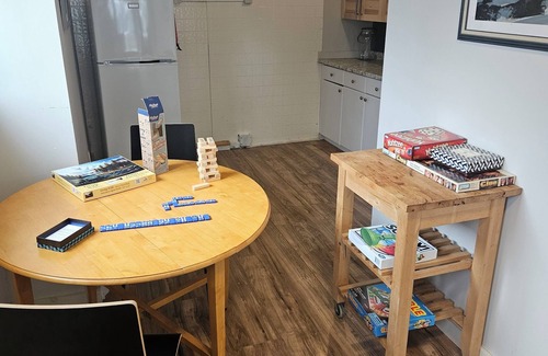 Indoor games: There are cards and a wide variety of board games in the hutch in the dining room.