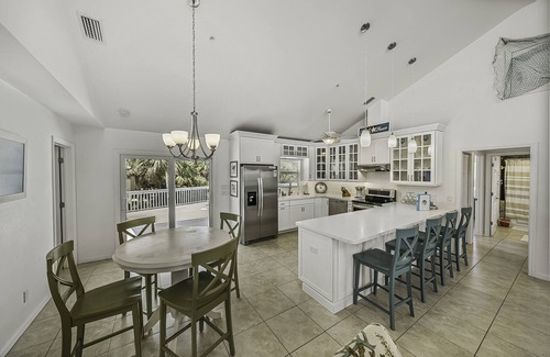 This custom, spacious home, built in 2015, is one of the few on the island that has a private pool located on the living level. You won't have to walk downstairs to enjoy the pool or cook on the grill. Simply walk out any of the 3 sliding glass doors from the kitchen, master suite or bedroom. The house has beautiful new furnishings and has been professionally decorated. The kitchen is fully stocked, complete with modern stainless steel appliances and a blender for your frozen drinks. The sky deck has 360 degree views of the Gulf of Mexico, Cayo Costa and Pine Island Sound.