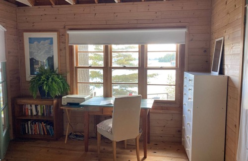 "Channel Island is a delightful place for a summer vacation on Lake Rosseau! The swimming is fantastic - you can swim or canoe around the island (we did both every day) - and the island's walking trails are scenic, private and fun - with a great view at the top (North-West) end of the island. The dock gets the sun all day long and has a great view on a low boat traffic area. The main cottage is comfy and bright - a great place for the family to get together for meals, play board games, sit by the fire or just watch TV. The satellite cabins (for sleeping) allow guests to spread out and enjoy some privacy at night. It's clean and comfortable and the location is unparalleled. Great for a family getaway." (from a renter in Summer 2023)