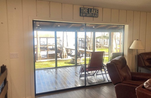 The lake house is set up for family getaways starting with our large open living room with seating and plenty of sleeping options with our twin beds and a fold out couch. Our large custom dinner table is great for family meals or game night. The kitchen is set up with everything you need to cook a great meal with all new appliances including a dish washer and built in commercial ice maker.