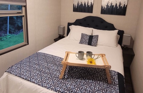 Here at Lio's Retreat in Shamrock Bay Resort, you'll find a modular home that's as comfortable as it is peaceful. We are nestled next to the forest with aprivate entry. The three bedrooms are made up of a master bedroom with a queen-size bed, and the other two rooms have single bunk beds. Up to 4 adults (those aged 16 and over) are allowed out of a total of 6 guests ( this is a resort rule, so please do not ask if we can change this). Complete cooking facilities (full size fridge, stove, microwave, coffeemaker, kettle and toaster). There is central heating and air conditioning, high speed wifi, a television (with Chromecast), a radio, a CD player, and a Bluetooth speaker. Large deck with patio furniture, Weber grill, Muskoka chairs, and fire pit for nighttime relaxation.
