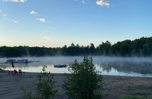 Located at Tiny Village Parry Sound, a private camping park with exceptional amenities and atmosphere, Evergreen Bunkie offers the perfect minimalistic road-trip glamping experience. Nestled on the beach of De Bois Lake and surrounded by a breathtaking view, it has all the amenities for a convenient stay.
