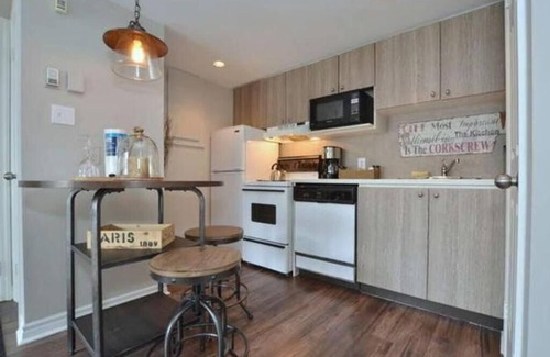 Nestled in The Blue Mountains, this apartment brings it all within your reach. Fans of nature and the outdoors will love being 3 minutes by car from Lake Huron and 3 minutes from Georgian Bay. Thanks to the convenient onsite parking, you can either leave your vehicle behind and let your feet make short work of the 14-minute walk to Blue Mountain Ski Resort, or easily tackle the quick 6-minute drive to Scandinave Spa Blue Mountain.