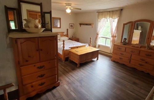 Discover the perfect family vacation retreat that comfortably accommodates six adults, complete with additional bunk beds for the kids. We're just minutes away from Bancroft Center, offering a wide array of year-round activities and fantastic local dining options, including a brewery and charming boutiques. Our serene, no-motor boat lake invites you to enjoy pristine and safe swimming, kayaking, or canoeing. For those seeking relaxation, Grail Springs Spa across the lake offers yoga and massage sessions. Adventure enthusiasts can explore the nearby parks, such as Silent Lake, Warsaw Caves, Eagles Nest, and Algonquin. Mature groups and families exclusively.