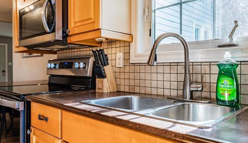 Refrigerator, Microwave, Dishwasher, Washing machine, Kitchen, Electric Kettle, Kitchenware, Tumble dryer (machine), Oven, Stove, Toaster, Cleaning products, Dining table, Wine glasses