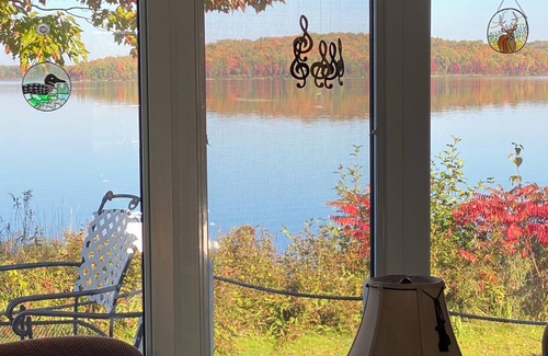 Front row sunset seats, and a serene atmosphere welcome you to this beautiful peninsula retreat on Wasi Lake. This welcoming, peaceful escape is home to plenty of playful birds, the wild call of the loon pair or the duck family swimming by to say hello. Enjoy all this from the wrap around deck, the dock, viewing platform or inside through the full west wall window display! Early risers will savor morning coffee/tea from the dock. Nighttime features starry nights and all day enjoy the quiet peaceful atmosphere. Relaxing windchimes are a soothing background with the gentle breezes off the Lake. Autumn brings brilliant fall colors and hiking trails in the area to explore. Winter hosts ice fishing right out front or snowshoeing/cross country skiing on the Lake or nearby trails.