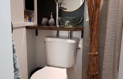 Fully renovated and furnished cozy home with a private terrace. The studio includes queen bed, sleeper sofa, kitchenette with fridge, induction cooktop, microwave and coffee maker. The Sleeper sofa when unfolded is about the size of a twin bed.