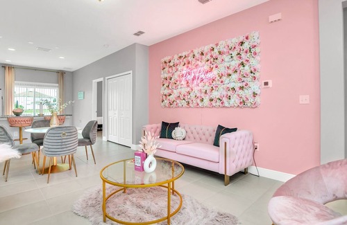 This ALL PINK home (duplex) was designed to entertain guests who love a good time and want to explore the city of Kissimmee!