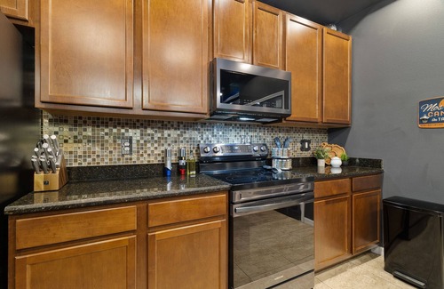 ⊜ Just a few steps away, prepare your favorite galactic meals in the fully equipped starship galley (aka the kitchen). With state-of-the-art appliances – including a modern refrigerator, stove, microwave, and dishwasher – along with specialty gadgets like a waffle maker, stick blender, full blender, air fryer, rice cooker, and a crockpot, your culinary possibilities are endless. The spacious kitchen island and abundant counter space make meal prep a breeze. Gather your crew for dinner at the dining table that seats 8 or pull up to the kitchen peninsula with seating for 4 more.