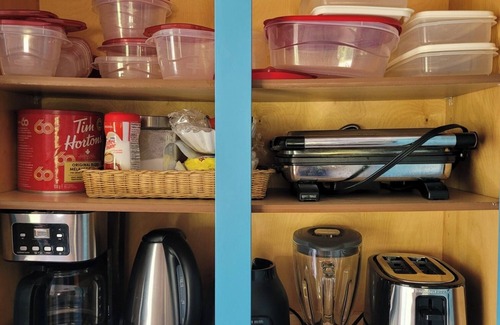Toaster, blender, hot water kettle, drip coffee maker with filters, BRING your coffee! Keurig BRING your pods!!. Cooking utensils, pots and pans, dishes and silverware, bowls, wine and drinking glasses, children’s dinnerware and plenty more (see pictures).