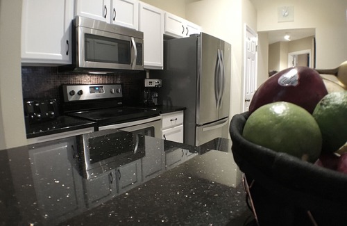 The spacious family room has 2 dinning areas and nice relax corner with a 55" big flat screen TV. The open floor plan gives you plenty off room to relax with friends and family. A fully equipped and well stocked kitchen with breakfast bar that covers all your dining needs. All granite countertops and top of the range stainless steel appliances.