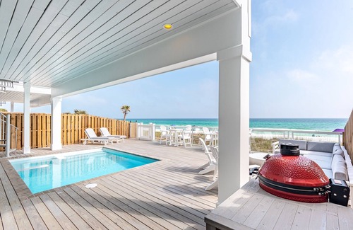 Trifecta by Holiday Beach Rentals is a luxury beachfront home featuring 10 bedrooms, 10.5 bathrooms, luxury linens from Peacock Alley, a private pool, fabulous game room and amazing beachfront views! This home is located on the west end of Panama City Beach and is a prime spot for your best beach vacation.