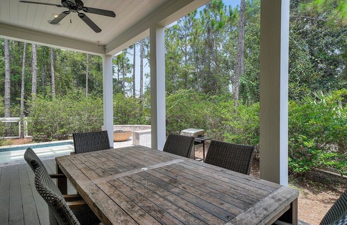 WaterColor Reunions is an immaculate new vacation house for rent in the Forest District of WaterColor. The neighborhood is family-friendly and centrally located. You'll enjoy authentic coastal living in this 6 bedroom, 6.5 bathroom home large enough for all your family and friends, and features a private pool. It also includes four bikes and a golf cart, and is a short drive or bike ride to the beach (1.1 mile to Seaside beach access and 2.2 miles to WaterColor Beach Club). The home is also in walking distance (0.2 miles) to the WaterColor Crossings shopping plaza with grocery store, pizza restaurant, and other essential amenities like the bank and postal stop. With everything close by, it's easy to feel right at home at WaterColor Reunions.