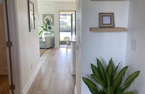 Waterfront condo with excellent views. The entire unit was recently renovated with a modern Florida design. The condo is located in the small, gated waterfront Yardarm community. The condo is single story, no overhead neighbors, private covered parking, with a nice view of the boat docks and waterway. Apollo Beach is a friendly waterfront community located at the halfway point between Tampa and Bradenton providing easy, convenient access to the best that West Florida has to offer. A great area to relax, fish, bike and explore. The Apollo Beach Nature preserve, white sands of Little Harbor beach, and the manatee viewing center are right around the corner. St. Pete and its beaches as well as Anna Maria Island are only 30 to 45 minutes away. Walk to nearby waterfront restaurants or rent a boat/jet skis to go explore. Grocery stores, drug stores, Starbucks, other stores and restaurants only a few minutes away. One of our favorite aspects of the property is how quiet and small the gated Yardarm community is. From the dock we enjoy watching the manatees, dolphins, and many different species of fish and birds that come through as well. After dark the dock's underwater lights attract all kinds of fish. At Yardarm you seem to be away from the city life but close enough to everyday conveniences when you need something. Bi-weekly cleaning maintenance is included.