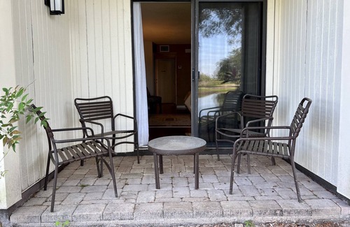 This ground floor Studio Suite is the perfect place for your stay if you're looking for convenience & comfort! This waterfront condo is located on the ground floor. For a restful night's sleep, we offer two comfy queen size beds. A Smart TV with Cable & Internet is ready for your TV or Netflix time. The studio is equipped with a microwave, Keurig pod coffee maker, toaster & compact refrigerator for the convenience of your stay. The unit has been updated with gorgeous wood flooring and has a work area for those working while traveling. The bathroom has a full bathtub and shower. Enjoy your breakfast or cup of coffee on the covered patio and enjoy the views of the pond. Get ready to enjoy your vacation!